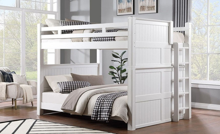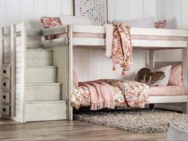 Choose from XL & Queen, triple and quadruple bunk beds, available in different design styles like cottage/ Coastal, farmhouse, log Barnwood and modern industrial. These beds come in beautiful finishes like white, cherry, oak, walnut, dark pecan, gray, black and navy blue.