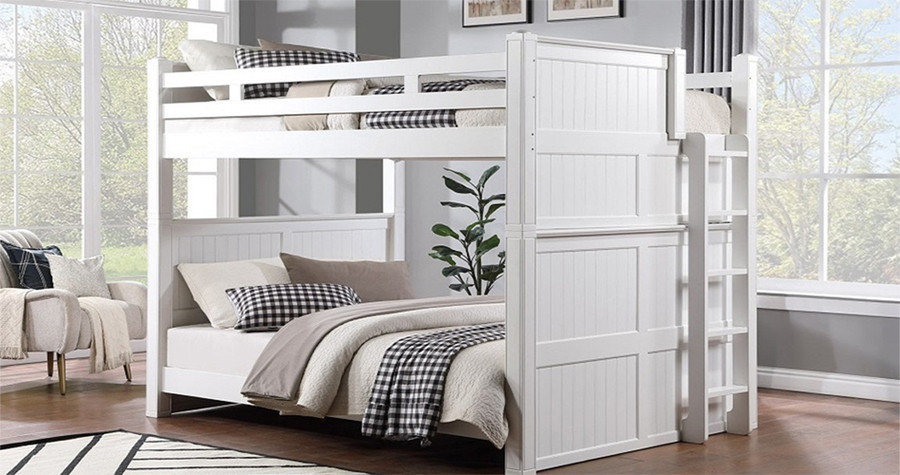 Choose from XL & Queen, triple and quadruple bunk beds, available in different design styles like cottage/ Coastal, farmhouse, log Barnwood and modern industrial. These beds come in beautiful finishes like white, cherry, oak, walnut, dark pecan, gray, black and navy blue.